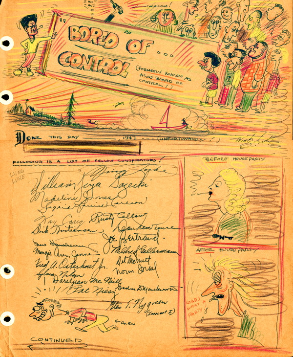 A notebook kept by the McReas during the 1940’s contains many signatures including Bill Gates, Sr. and his future wife Mary Maxwell, future Seattle Councilman Wing Luke, and future senator and Secretary of Transportation Brok Adams, as well as cartoons drawn by students including some by Wing Luke.
