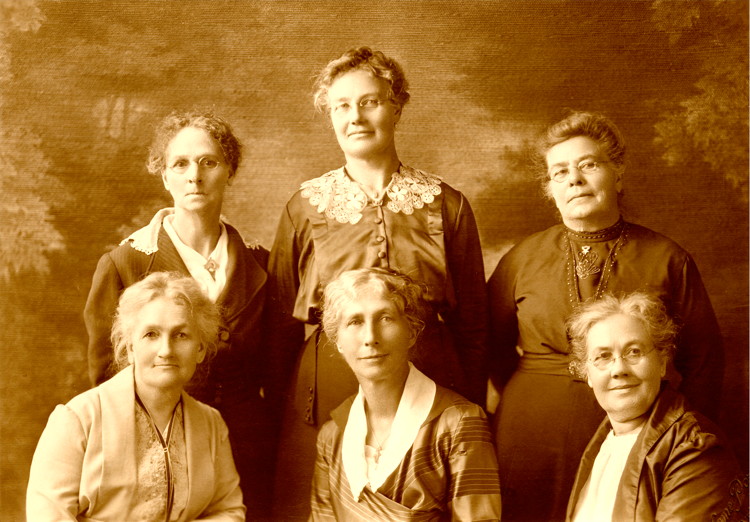 1920. Langley's first All-Woman town administration. L-R: (front row): Grace English, Helen Coe (Mayor), Emma Monson; (back row) Clara Brown, Lillian Wylie, Margaret McLeod. (Courtesy of Karen Pauley.)